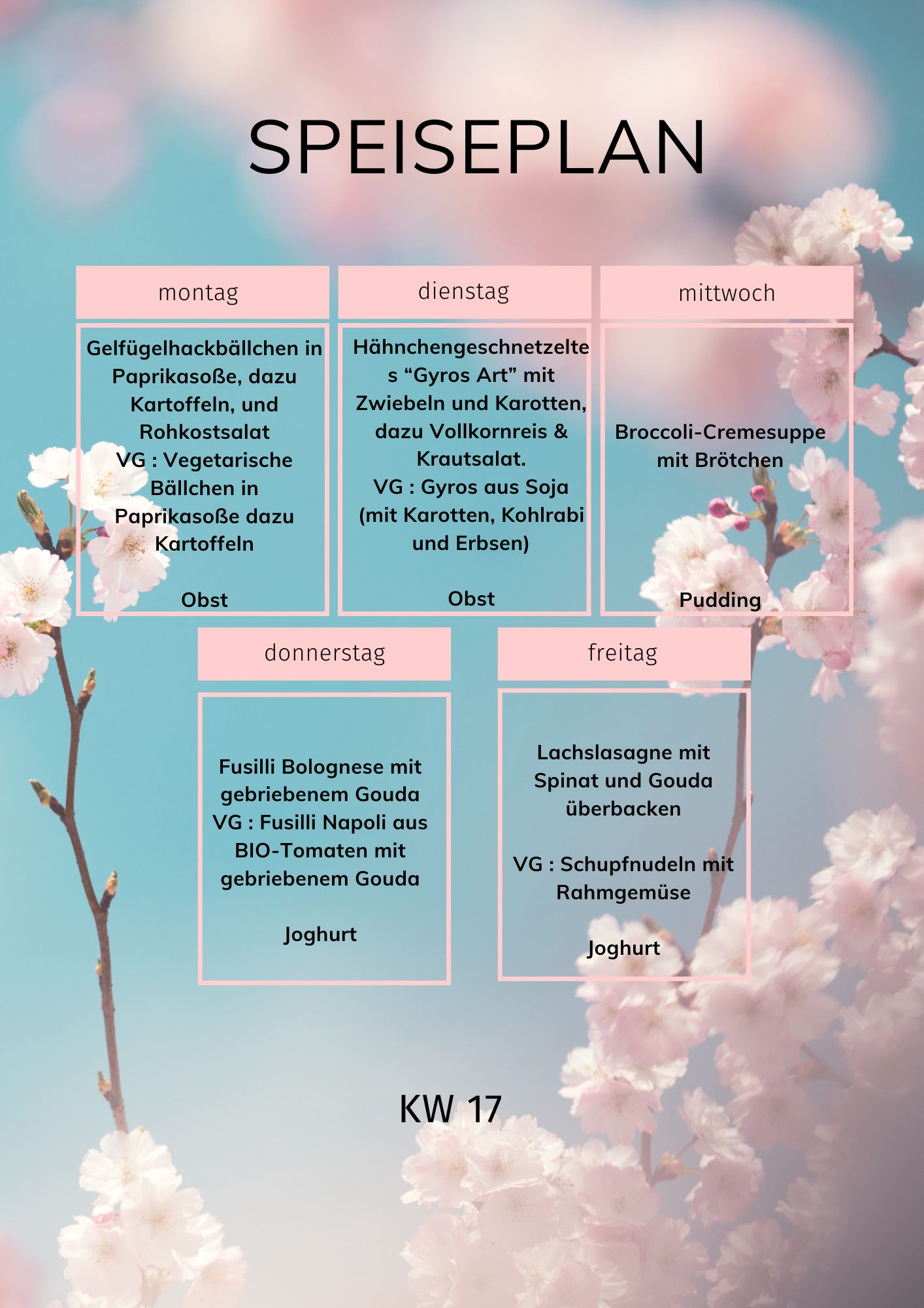 Für die „warme“ Kantine greifen wir auf eine mittelständische Cateringfirma zurück, die sich unter anderem auf die Versorgung von Kitas und Grundschulen spezialisiert hat. Die Zutaten für die Speisen kauft das Unternehmen zu einem Großteil bei Landwirten und lokalen Händlern aus der Region ein. Die Kinder werden in die Auswahl des Wochenmenus involviert (Hauptspeise und Dessert).